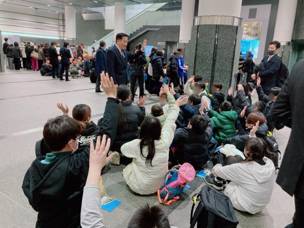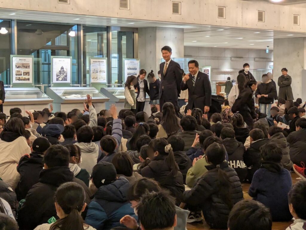 翌日は平尾小学校の皆さんを朝日健太郎参議院議員と共にごあいさつさせていただきました。